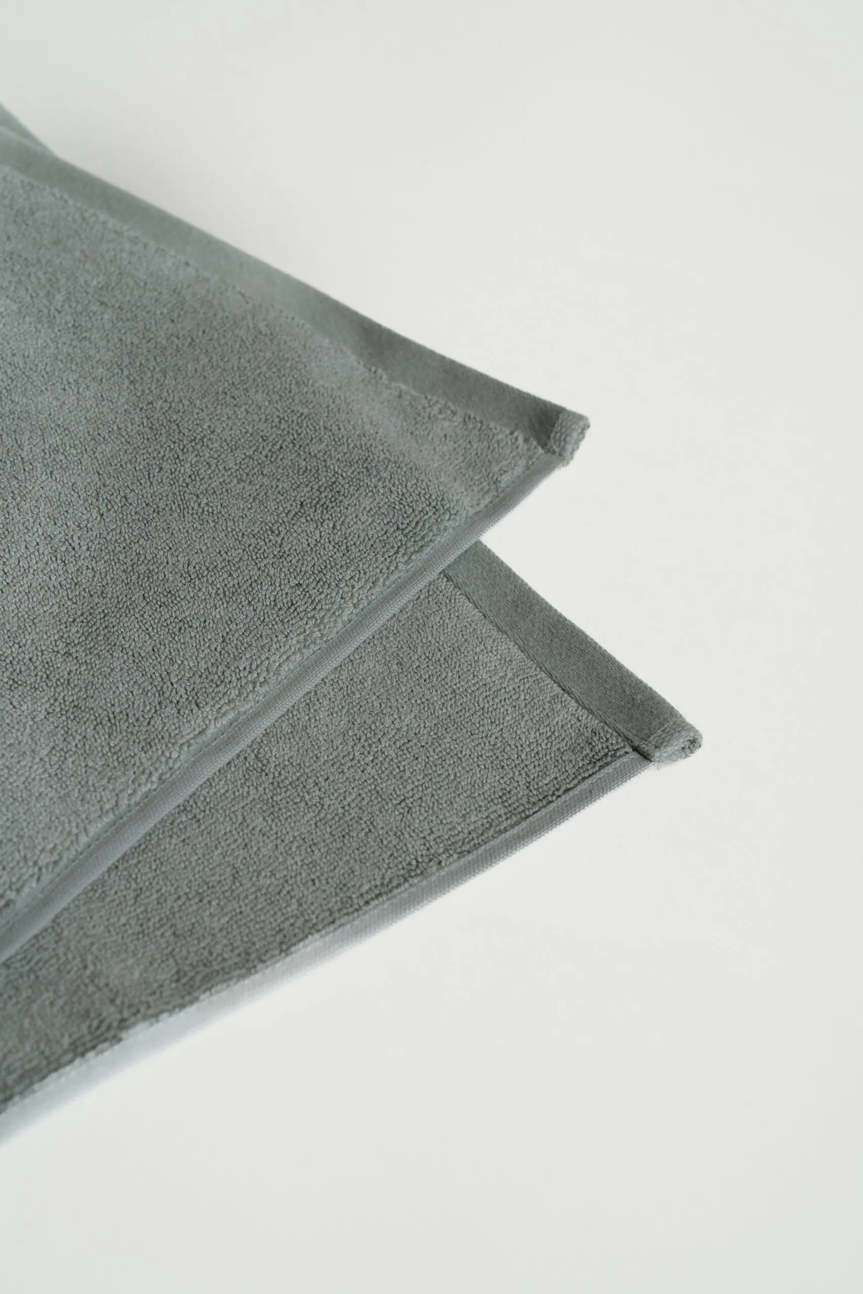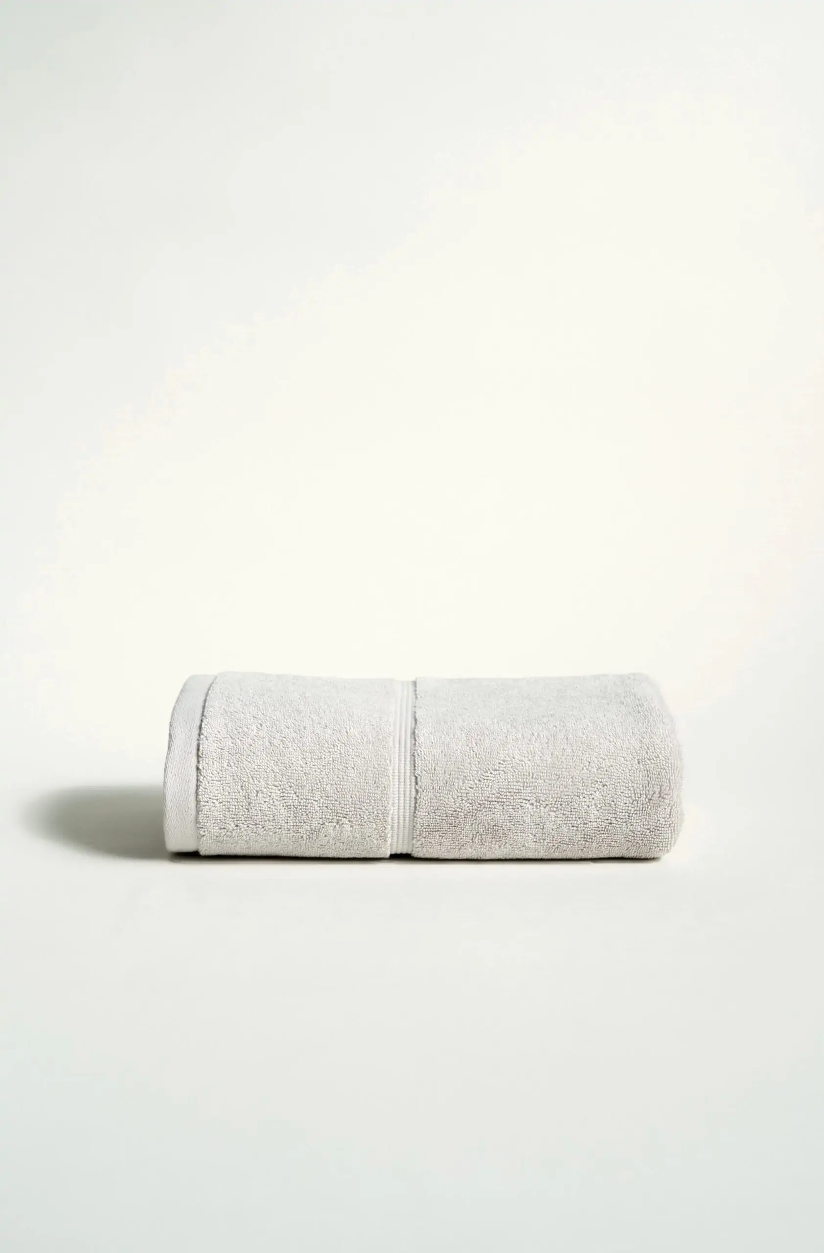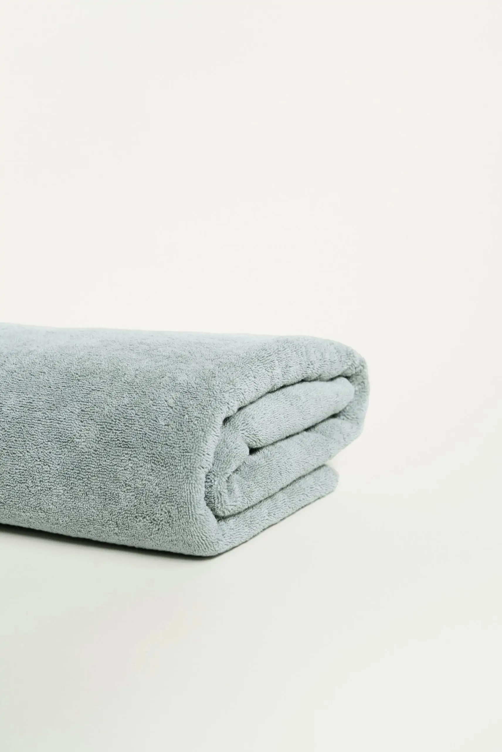 Una toalla bien generosa, de 100x150 cm. 100% algodón peinado, de Portugal, muuuy gordita y suave, pero sin ese tacto aterciopelado que da la sensación de que no seca. Hemos conseguido una toalla que sigue suave y mullida tras los lavados, súper absorbente y gustosa, ¡digna de hotel de 5 estrellas!
