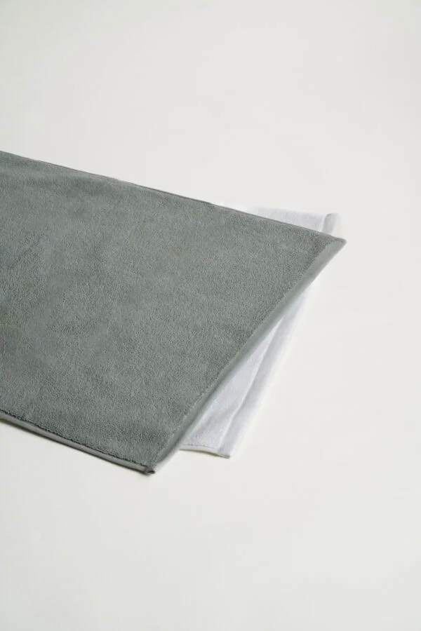 2 alfombrillas de baño, en set. 100% algodón peinado, de Portugal, muy gorditas (1000 grs/m2) y mullidas, pero sin ese tacto aterciopelado que da la sensación de que no seca. Sencillas y confortables, de 50×75 cm, digna de resort!