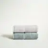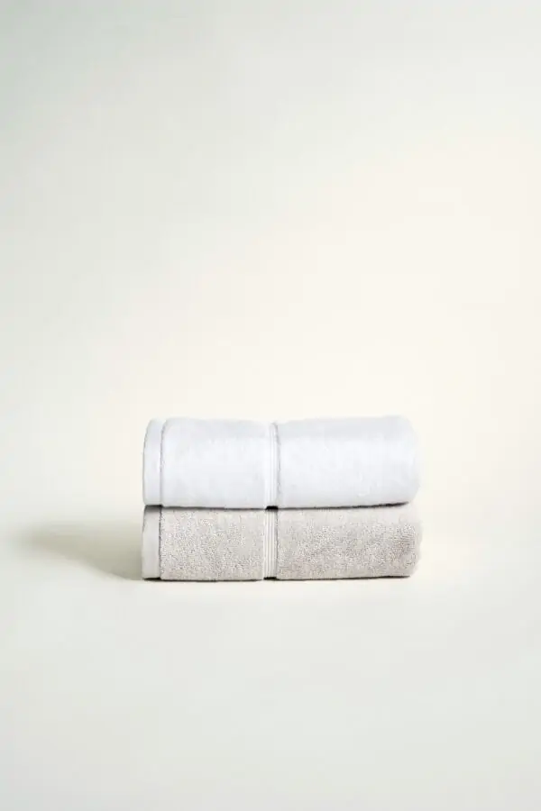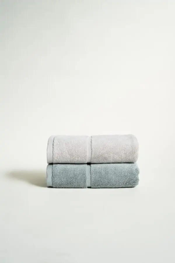 2 toallas de cara, en set. 100% algodón peinado, de Portugal, muuuy gorditas y suaves, pero sin ese tacto aterciopelado que da la sensación de que no seca. Hemos conseguido una toalla que sigue suave y mullida tras los lavados, súper absorbente y gustosa, ¡digna de hotel de 5 estrellas!