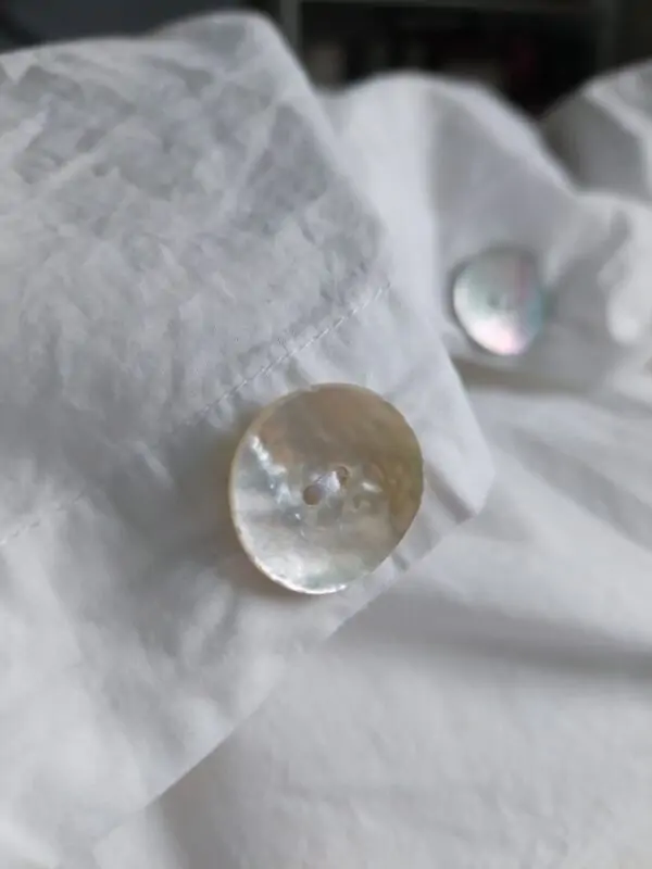 100% algodón percal lavado de 300 hilos de fibra larga que con el tiempo, solo irá a mejor. Es muuuy suave, agradable, transpirable y con un cierre oculto de botones de nácar. El efecto lavado, además de un extra de confort y estilo, te da la excusa perfecta para no tener que plancharla.