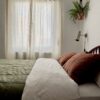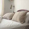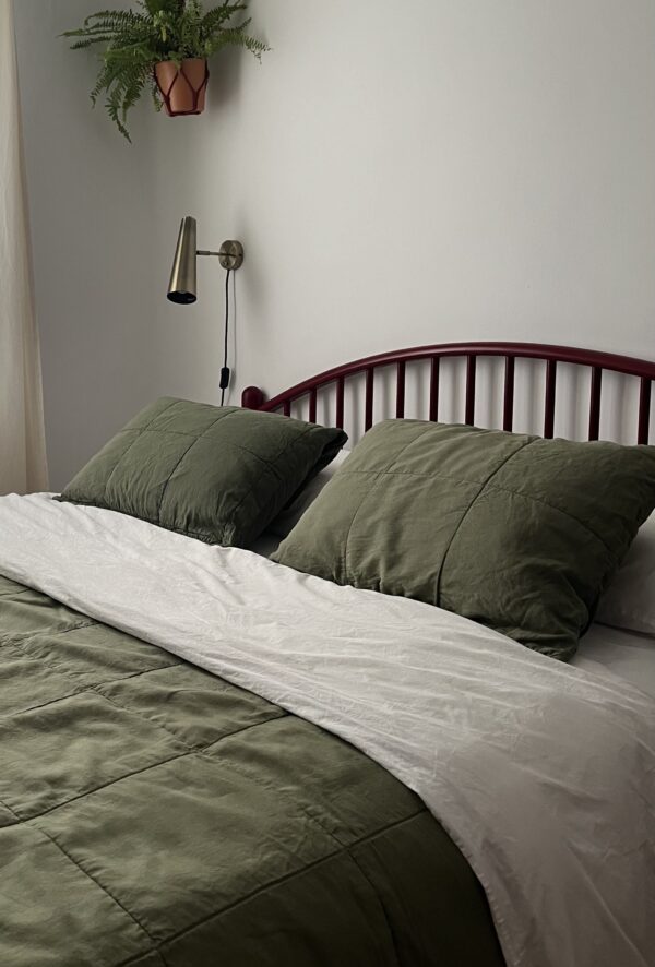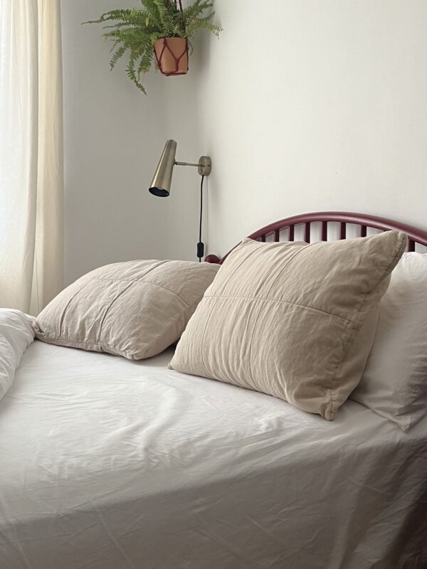 2 fundas con un tejido 60% lino/ 40% algodón y un guateado de cuadros grandes por una de las caras que las hace súper especiales. Decoran? Sí, mucho, son preciosas, pero no solo! Si las quieres usar de verdad, vas a encontrar un tejido súper fresco y agradable. Son una joyita!