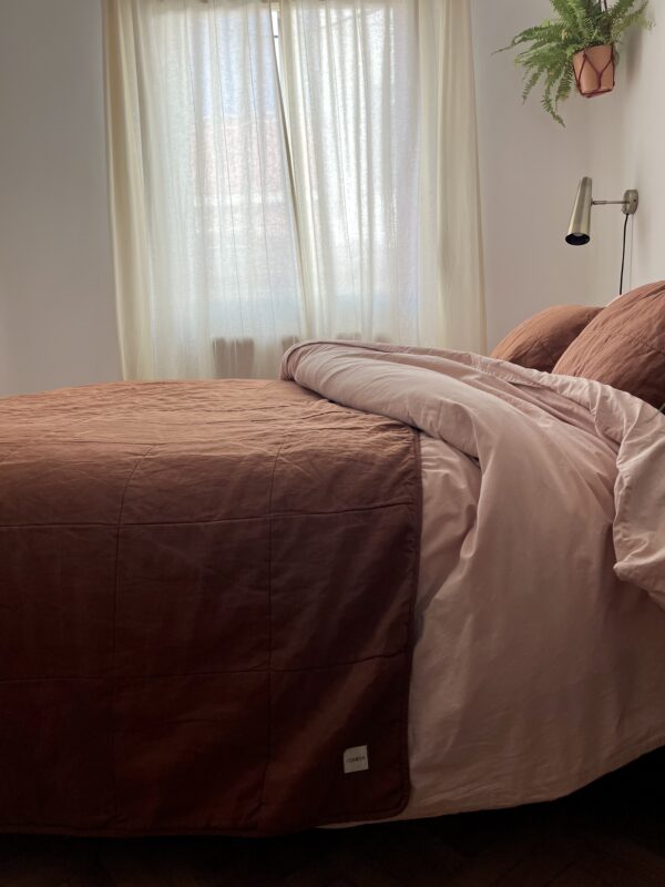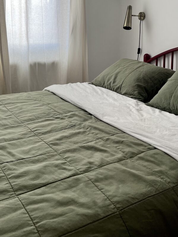 1 manta de la medida perfecta para usarla en la cama o en el salón y un tejido que te va a enamorar: 60% lino/ 40% algodón y un guateado de cuadros grandes que, junto con la textura del lino, forma la mezcla ideal entre algo natural y sencillo y algo más sobrio y elegante. Además, los colores están perfectamente pensados para que combinen con casi todos nuestros colores, quedan increíbles!